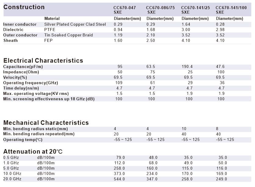 The low attenuation and high-frequency signal transmission property makes the cable suitable to be used in the wireless and micro wave measuring equipments.